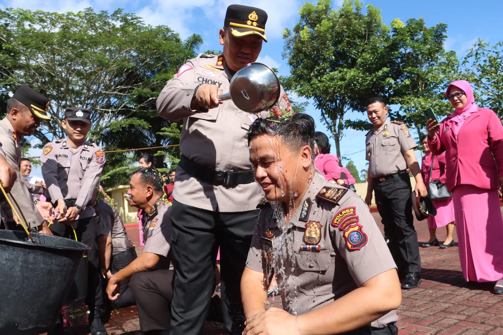 Seusai upacara formal, acara dilanjutkan dengan tradisi penyiraman air bunga kepada personel yang naik pangkat. Kapolres juga menyerahkan cinderamata kepada personel yang memasuki masa purna bakti sebagai bentuk apresiasi atas dedikasi mereka selama bertugas.