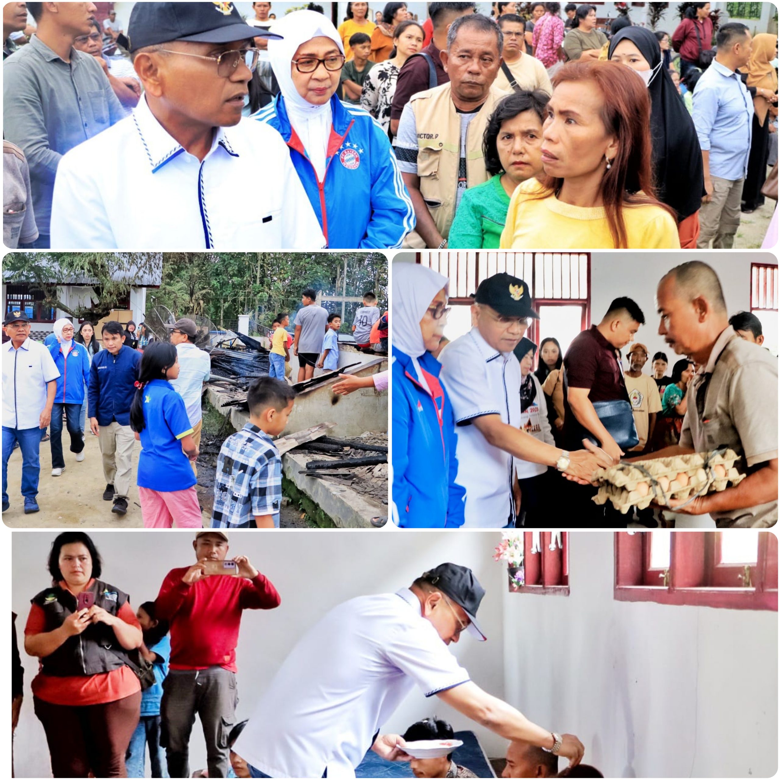 Selain meninjau lokasi dan memberikan semangat kepada para korban, Bupati Simalungun, didampingi Kepala Dinas Sosial (Osnidar Marpaung) dan perwakilan dari BPBD, Dinas Pendidikan, dan Dinas Kesehatan, menyerahkan bantuan berupa sembako dan bantuan lainnya.