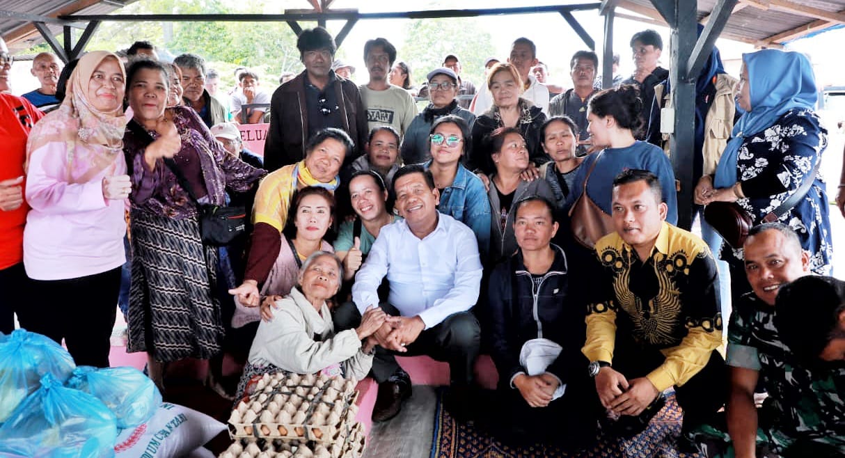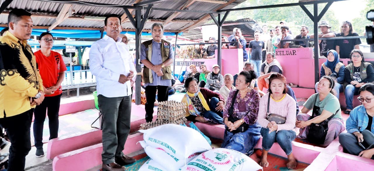 SIMALUNGUN _ Bupati Simalungun Radiapoh Hasiholan Sinaga mengunjungi masyarakat yang pondok tempat usahanya terbakar di kota Parapat Kecamatan Girsang Sipangan Bolon, Simalungun, Sumut, Minggu (22/9/2024).