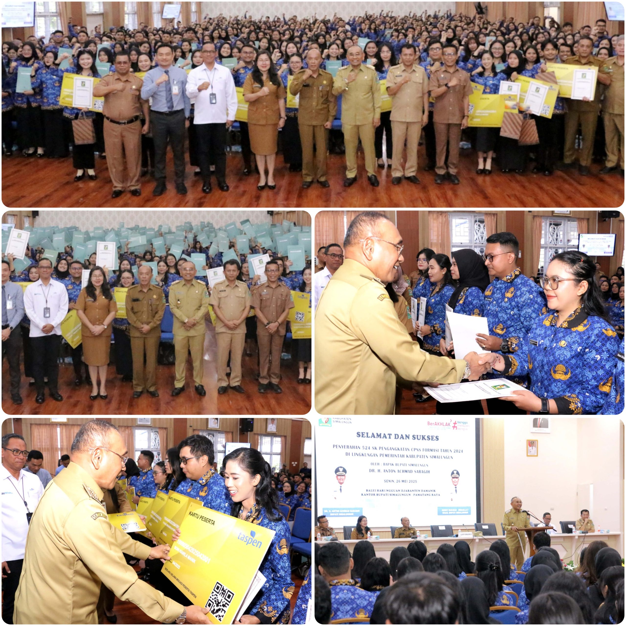 ANEWS-Chanel – Pematang Raya, Sumatera Utara – Senin, 26 Mei 2025, menjadi hari yang bersejarah bagi 524 Calon Pegawai Negeri Sipil (CPNS) di lingkungan Pemerintah Kabupaten Simalungun. Bertempat di Balei Harungguan Djabanten Damanik, Kantor Bupati Simalungun, mereka resmi dilantik dan menerima Surat Keputusan (SK) pengangkatan dari Bupati Simalungun, Anton Achmad Saragih. Pelantikan ini menandai berakhirnya proses seleksi CPNS formasi tahun 2024 yang kompetitif.
