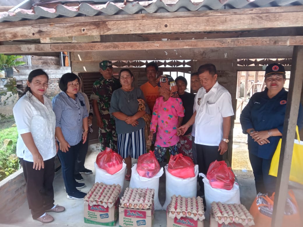 Terpantau, Camat Tanah Jawa bersama Kesos, Kadis Sosial diwakilkan Kabid dan BPBD Kabupaten Simalungun menyerahkan bantuan berupa sembako kepada para korban banjir di Nagori Baliju.