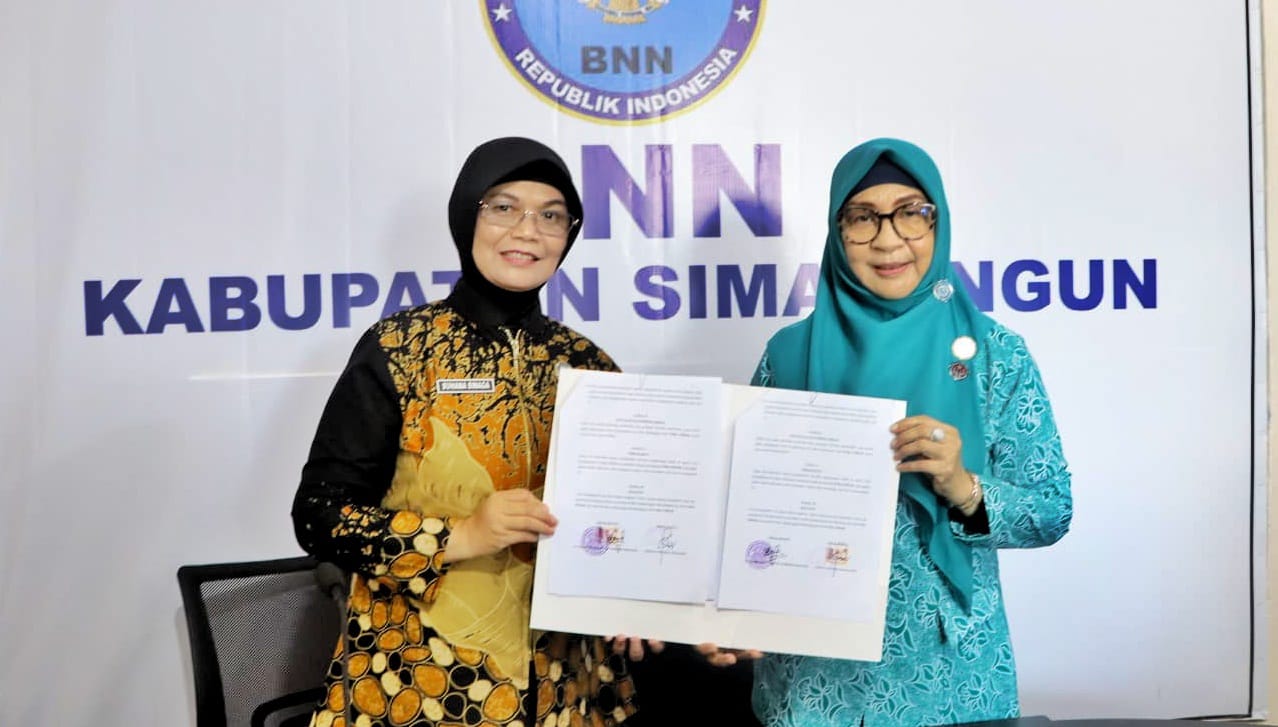 Penandatangan tersebut langsung dilakukan oleh Ketua TP PKK Kabupaten Simalungun Ny Darmawati Anton Achmad Saragih bersama Kepala BNN Simalungun AKBP Suhana Sinaga di kantor Badan Narkotika Nasional Pematang Raya, Sumut, Selasa (6/5/2025).