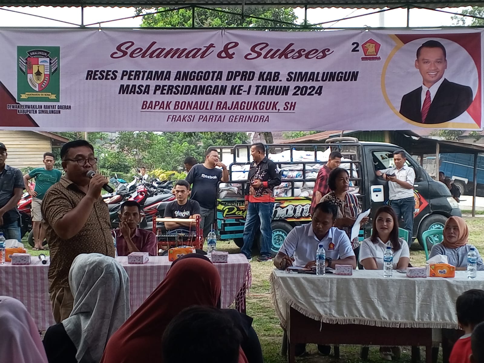 SIMALUNGUN _ Bonauli Rajagukguk SH, Anggota DPRD Simalungun, Fraksi Gerindra gelar Reses Pertama TA 2024 di Nagori Balimbingan kecamatan Tanah Jawa, Pada Minggu (04/02/2024)