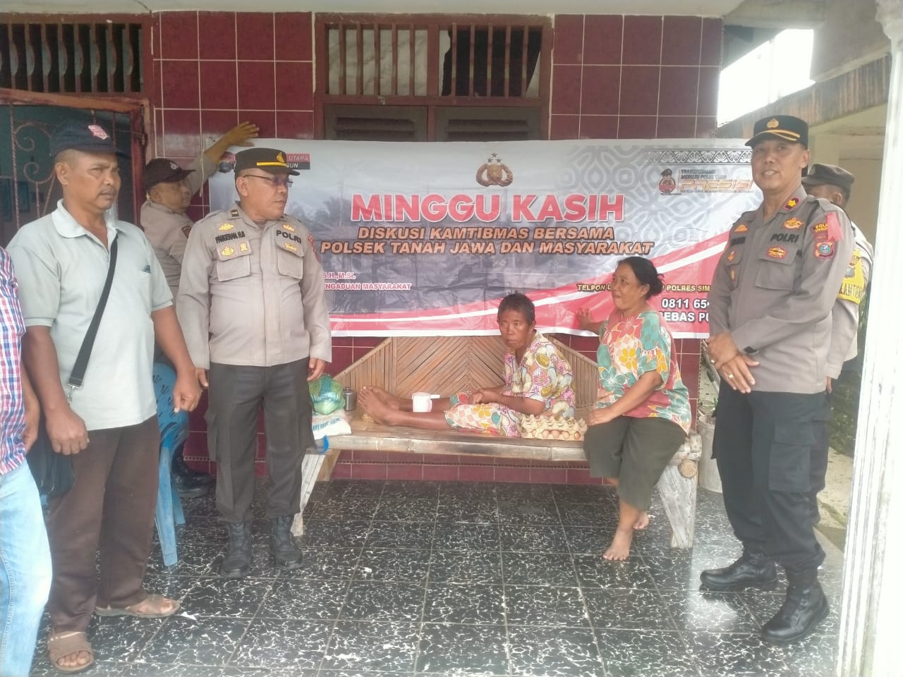 Kegiatan Minggu Kasih ini dihadiri oleh beberapa personel Polsek Tanah Jawa, di antaranya Kapolsek Tanah Jawa Kompol Asmon Bufitra, S.H., M.H., Panit I Binmas Ipda Pangeran Sidauruk, Bhabinkamtibmas Aiptu M. Nur Nasution, Aiptu Rinaldi, dan Kasium Aiptu PE. Pakpahan. Mereka secara langsung turun ke lapangan untuk menyerahkan bantuan sembako kepada warga yang membutuhkan.