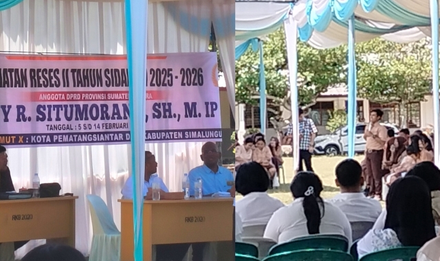 SIMALUNGUN – Pelataran SMA Negeri 1 Tanah Jawa, Rabu (11/2/2026), berubah menjadi ruang demokrasi yang hidup. Di teratak yang disiapkan panitia, ratusan siswa, guru, dan komite sekolah menyampaikan aspirasi mereka secara langsung kepada Ketua Komisi III DPRD Sumatera Utara dari Fraksi NasDem, Rony Reynaldo Situmorang SE, dalam agenda Reses Masa Sidang Ke-II Tahun 2026.