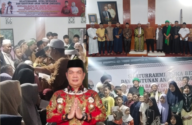 Acara yang berlangsung dalam suasana religius dan penuh kehangatan itu dipimpin langsung oleh Tuan Guru Batak Syach Ahmad Syakban Elrahmany Rajagukguk, MA. Meskipun H. Novri Aritonang berhalangan hadir secara langsung, kepeduliannya tetap tersalurkan melalui perwakilan adik kandung beliau, Rizky Aritonang, yang hadir menyerahkan santunan kepada puluhan anak yatim.