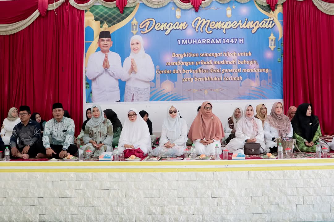 SIMALUNGUN — Bupati Simalungun, Dr. H. Anton Achmad Saragih, bersama Ketua TP PKK Ny. Darmawati Anton Achmad Saragih menghadiri Pengajian Akbar se-Kecamatan Siantar dalam rangka memperingati Tahun Baru Islam 1 Muharram 1447 H. Kegiatan ini berlangsung di Gedung MUI Simalungun, Jalan Asahan, Minggu (29/06/2025).