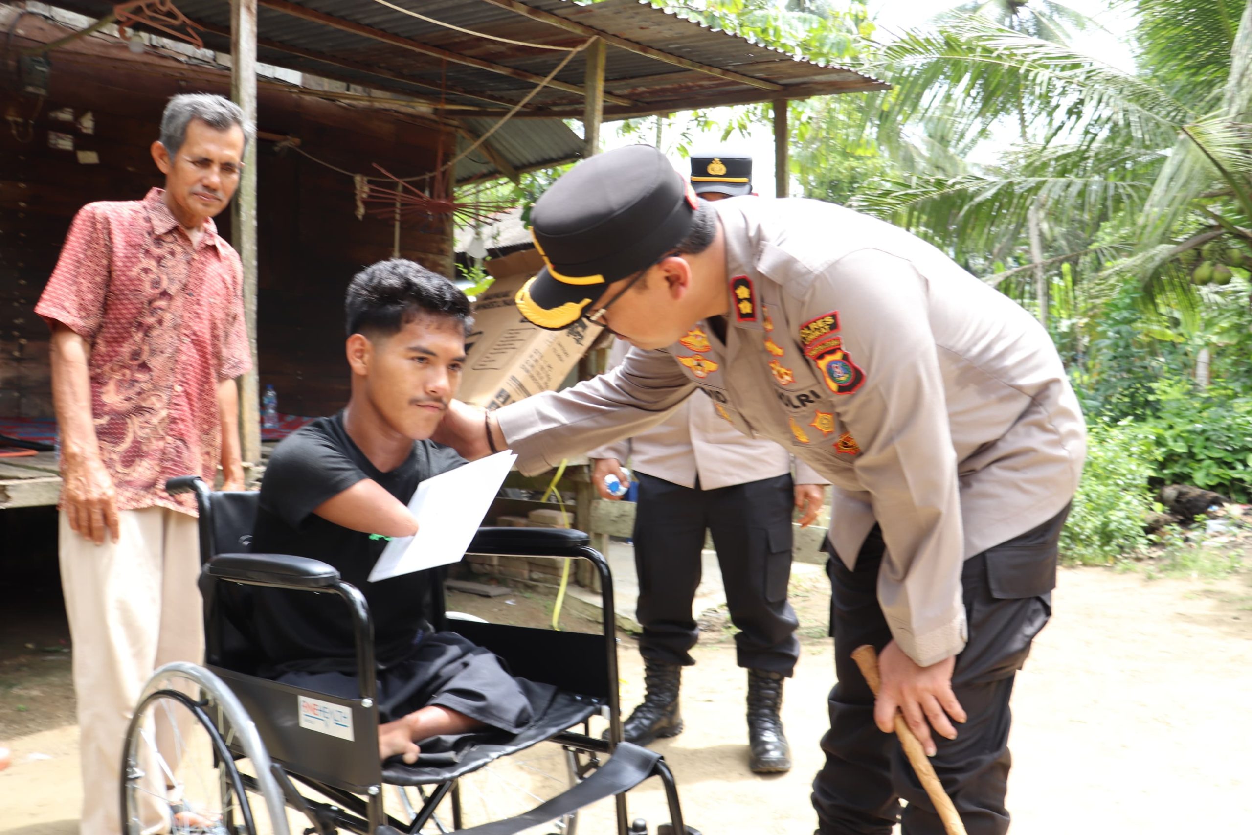 Rahmatullah Penyandang Disabilitas Dapat Bantuan Kursi Roda dari Kapolres Langkat.