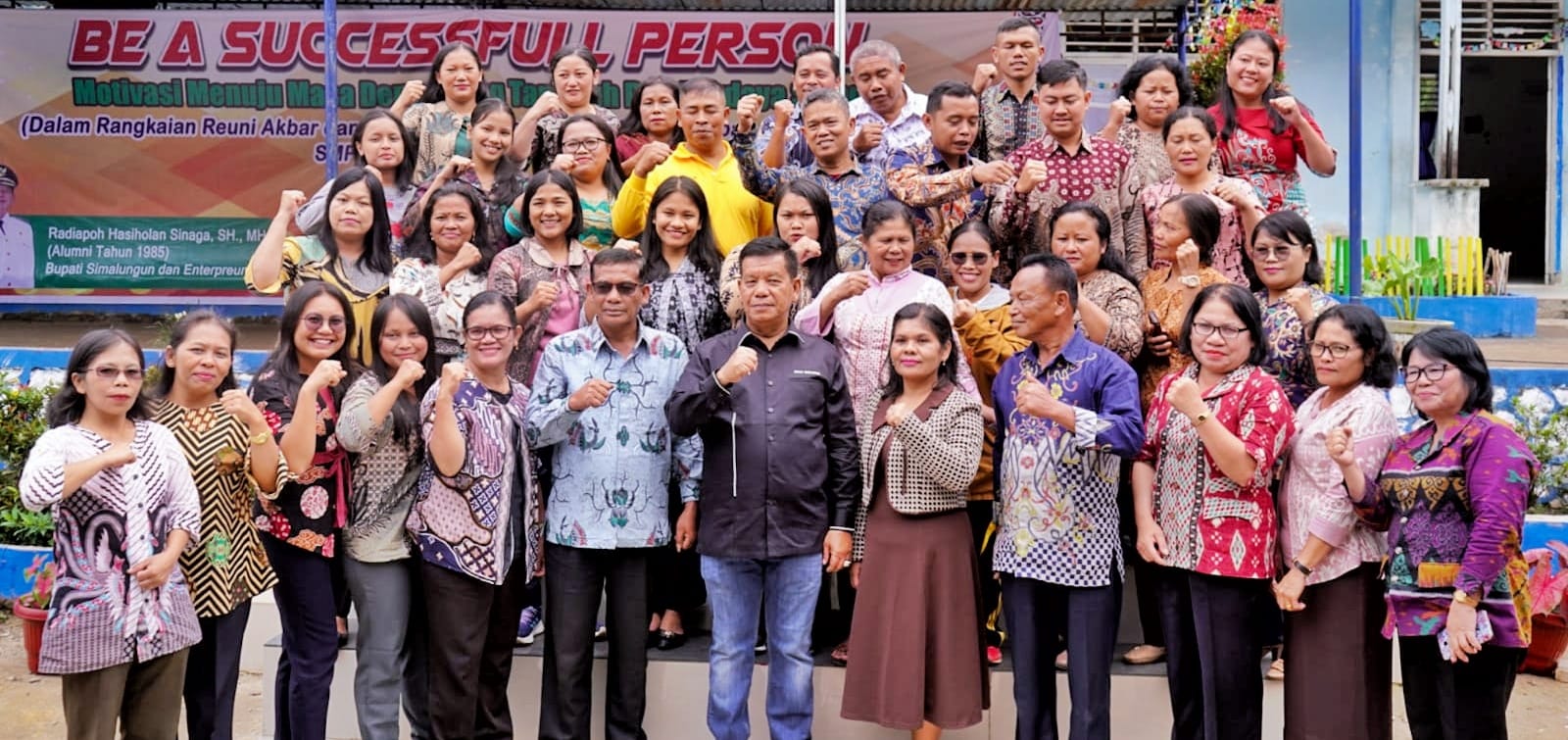 Hadiri Reuni Akbar dan Marsombuh Sihol Di SMPN 1 Purba-Tiga Runggu, Bupati: “Sukses itu tidak ada yang instan.