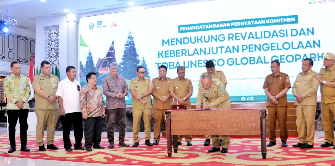 Bupati Simalungun Tandatangani Komitmen Dukung Revalidasi Toba UNESCO Global Geopark.
