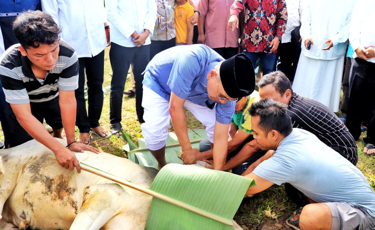 Bupati Simalungun Turun Langsung Menyembelih Hewan Kurban di Masjid Ilham Sigundaba.
