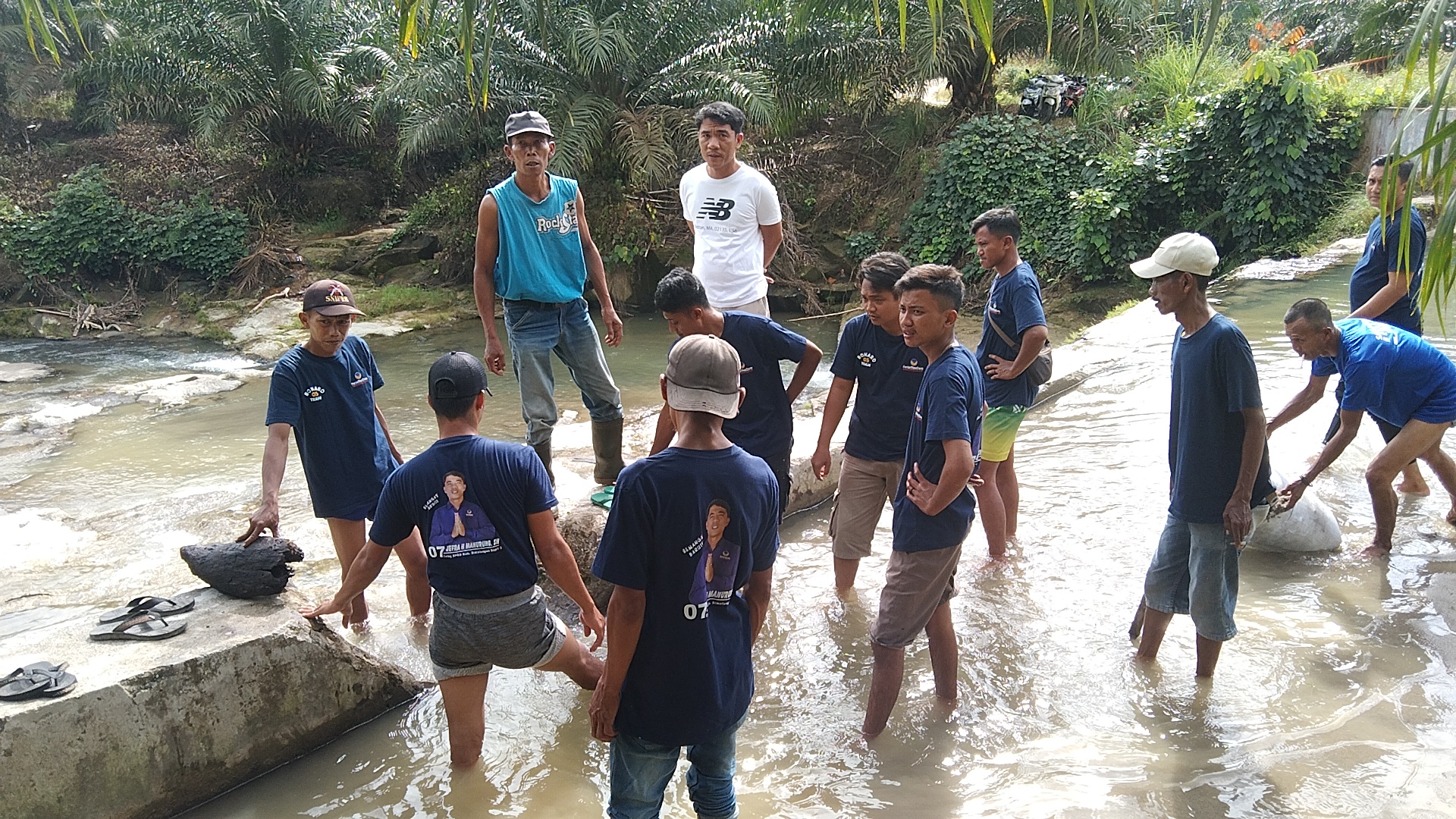 JEFRA MANURUNG bersama warga masyarakat menuju lokasi areal Perkebunan PTPN IV Unit Kebun Balimbingan yang menjadi pintu pembagian saluran air menuju dua dusun tersebut.