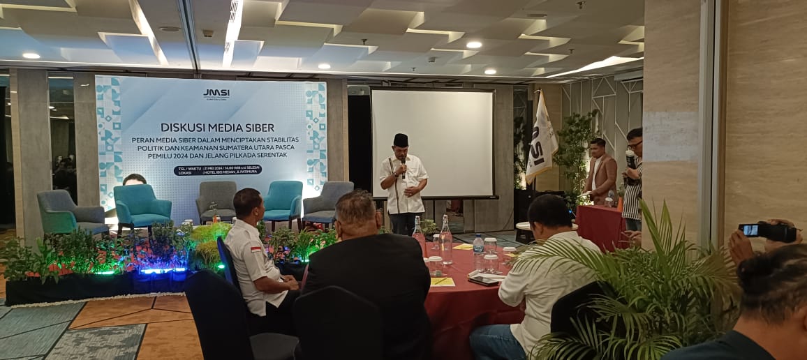 ANEWS-Chanel//Sumatra Utara : Dengan berhasilnya pelaksanaan Pemilihan Umum (Pemilu) dan menyambut tahapan Pemilihan Kepala Daerah (Pilkada) 2024, Jaringan Media Siber Indonesia Sumatera Utara (JMSI Sumut) hadir ambil bagian ciptakan stabilitas politik dan keamanan di Sumatera Utara dengan melaksanakan diskusi media siber untuk mencegah berita hoax.