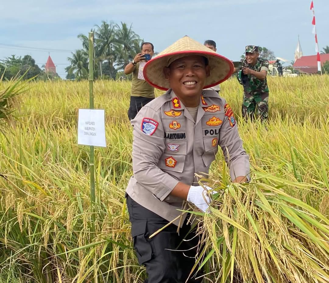 Simalungun, Sumut – Dalam semangat kebersamaan dan mendukung program ketahanan pangan nasional, Kapolres Simalungun, AKBP Marganda Aritonang, S.H., S.I.K., M.M., menghadiri kegiatan Panen Raya Padi yang digelar di Nagori Muara Mulia, Kecamatan Tanah Jawa, Kabupaten Simalungun, Selasa (24/6/2025).