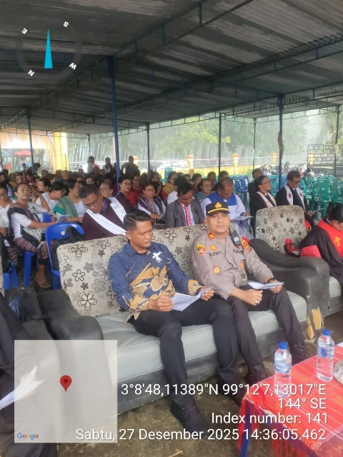 Momentum penuh makna ini turut dihadiri Kapolsek Perdagangan AKP Ibrahim Soepi, SH, MH, bersama Kanit Samapta AIPTU James Simanjuntak, SH, pada Sabtu (27/12/2025) di Halaman Gereja HKBP Aek Nauli, Nagori Naga Jaya II, Kecamatan Bandar Huluan, Kabupaten Simalungun.