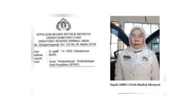 Medan – Kasus dugaan penipuan dan penggelapan yang melibatkan Kepala SMKN 1 Dolok Masihul, Misrayani, S.Pd., M.Si., terus bergulir di Polda Sumatera Utara (Sumut). Meski telah ditetapkan sebagai tersangka, hingga kini Misrayani belum ditahan, memunculkan tanda tanya di kalangan masyarakat dan pelaku usaha.