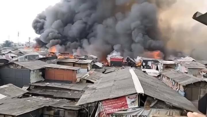 Api dengan cepat membesar dan menyebar dengan cepat akibat angin dan kondisi rumah-rumah yang berdempetan. Kepulan asap hitam membumbung tinggi ke langit, terlihat dari jarak yang cukup jauh.
