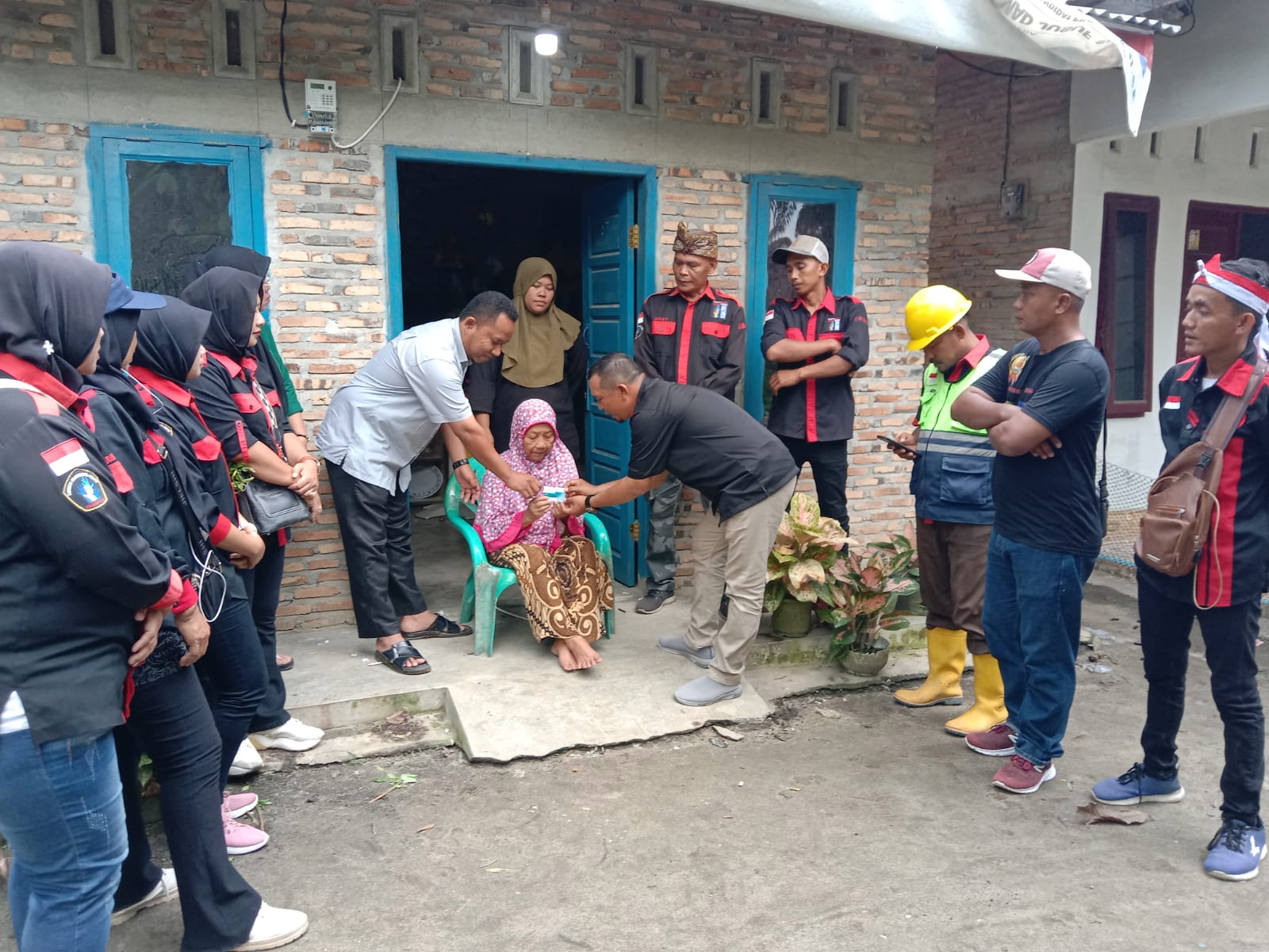 Selanjutnya Pangulu yang baru menjabat lebih kurang 6 bulan tersebut bersama Ketua KRNS tampak bersama-sama menyerahkan kartu ID pelanggan PLN kepada Nek Sarinem.