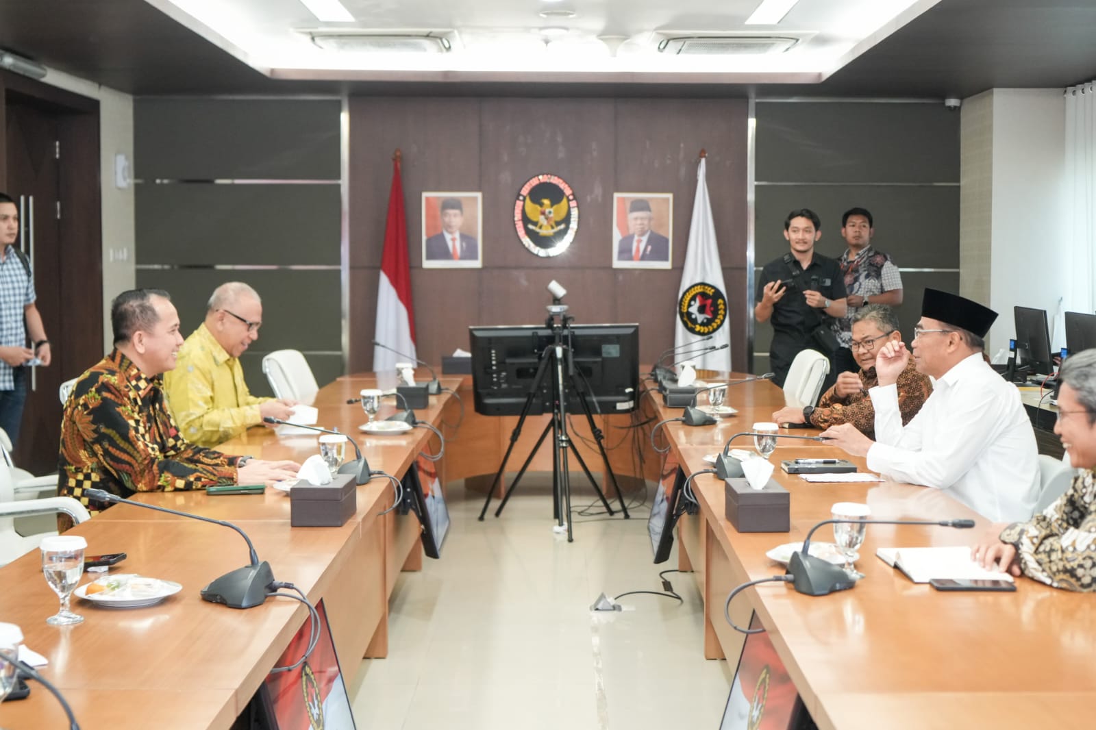 Turut hadir pada kesempatan tersebut selain Pj Gubsu A Fatoni, Ketua harian PB PON Wilayah Sumut Baharuddin Siagian, Staf Ahli Gubernur Bidang Hukum Politik dan Pemerintahan Effendy Pohan yang juga sekretaris umum PB PON, Kepala Dinas Komunikasi dan Informatika Sumut Ilyas Sitorus kepala bidang humas publikasi, informasi dan teknologi, dan Kepala Biro Umum Setdaprov Sumut Dedi Jaminsyah Putra ketua bidang Komsumsi. (Rizky Zulianda)