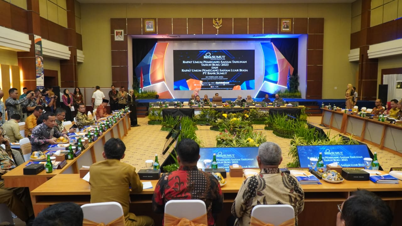 MEDAN _ PJ Bupati Langkat H. M. Faisal Hasrimy, AP., M.Ap diwakili Sekertaris Daerah Kabupaten Langkat H. Amril Nasution, S.Sos., M.Ap menghadiri Rapat Umum Pemegang Saham Tahun Buku 2023 dan Rapat Umum Pemegang Saham Luar Biasa PT Bank Sumut bertempat di Gedung Kantor Pusat PT Bank Sumut, (26/02/2024)