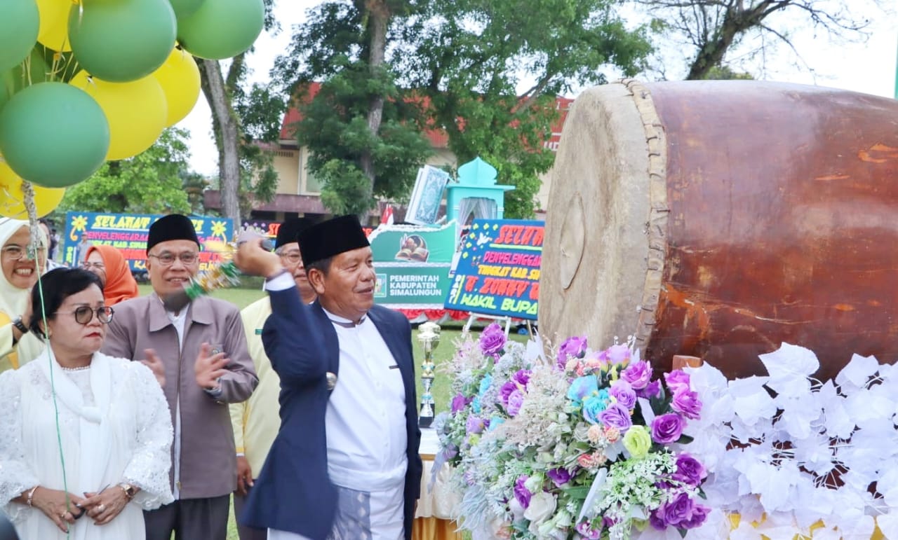 Gelar MTQ tersebut dibuka secara Resmi oleh Bupati Simalungun Radiapoh Hasiholan Sinaga ditandai dengan pemukulan bedug, pelepasan balon dan pemukulan gonrang.