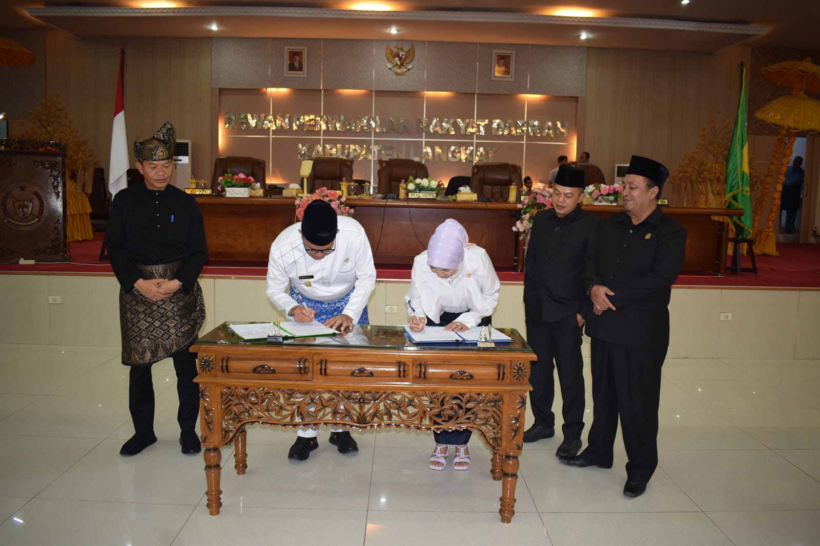 Kesepakatan tersebut ditandai dengan ditandatanganinya Nota Kesepakatan Bersama antara Pimpinan DPRD Langkat dengan Pj. Bupati Langkat pada rapat paripurna di gedung DPRD Langkat, Jum’at (30/08/2024).