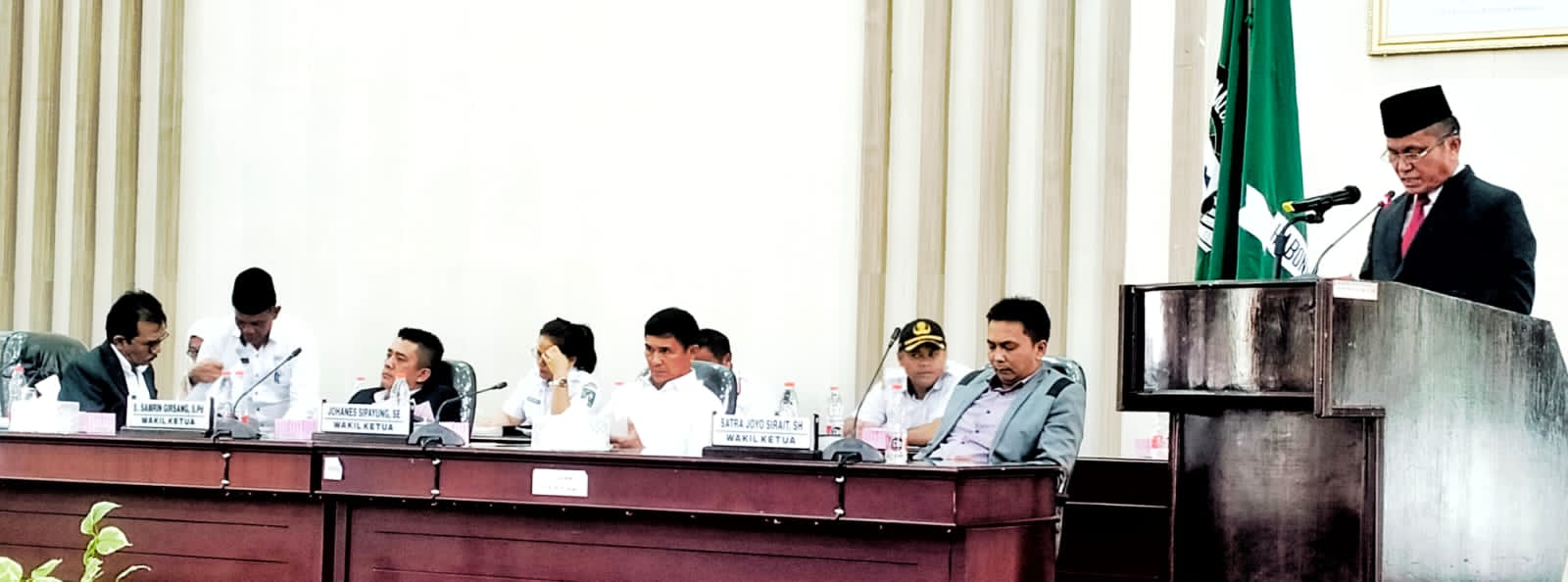 Rapat paripurna tersebut dipimpin langsung oleh Ketua DPRD Simalungun Timbul Jaya Sibarani didampingi Wakil-wakil Ketua yaitu Samrin S Girsang, Johanes Sipayung dan Sastra Joyo Sirat serta dihadiri oleh para Anggota DPRD Simalungun.