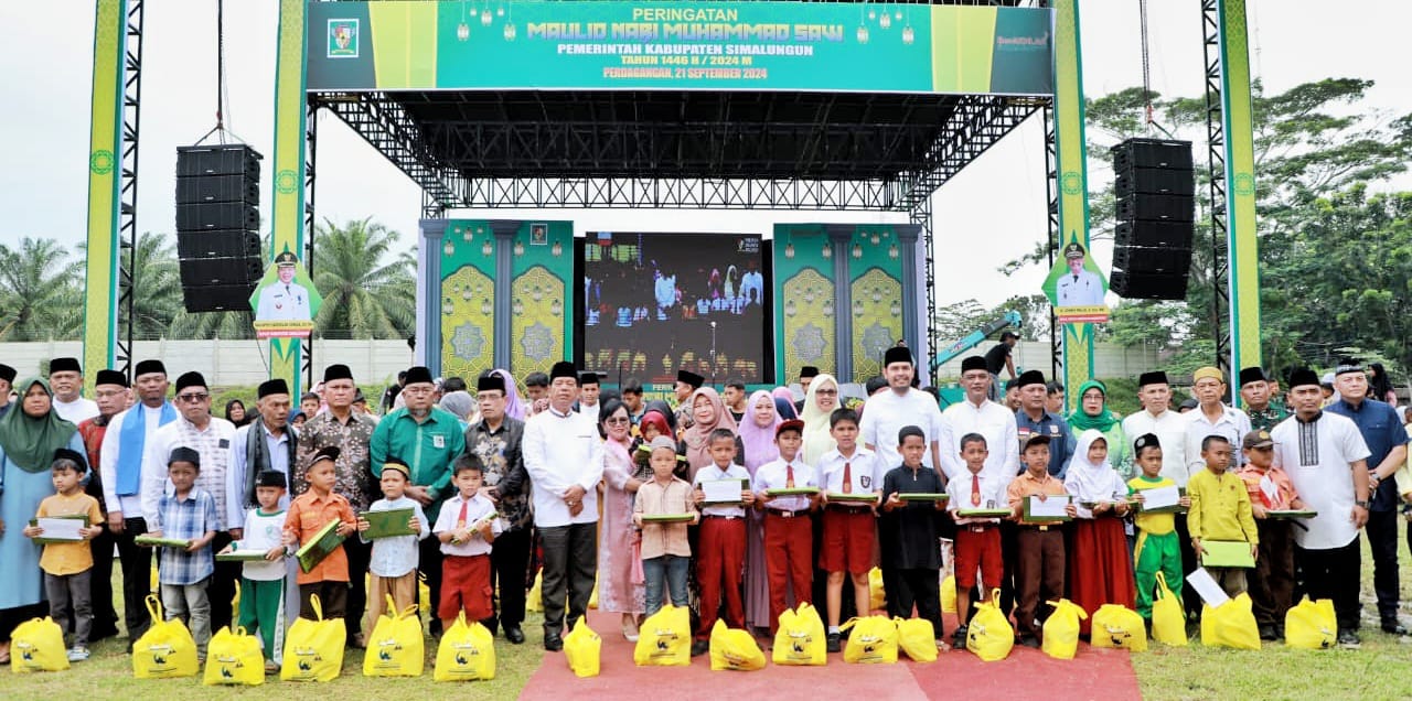 SIMALUNGUN – Pemerintah Kabupaten (Pemkab) Simalungun menggelar peringatan Maulid Nabi Muhammad SAW Tahun 1446 H/2024 M di halaman Masjid Al-Munawaroh Kota Perdagangan Kecamatan Bandar, Simalungun, Sumut, Sabtu 21 /09/2024.