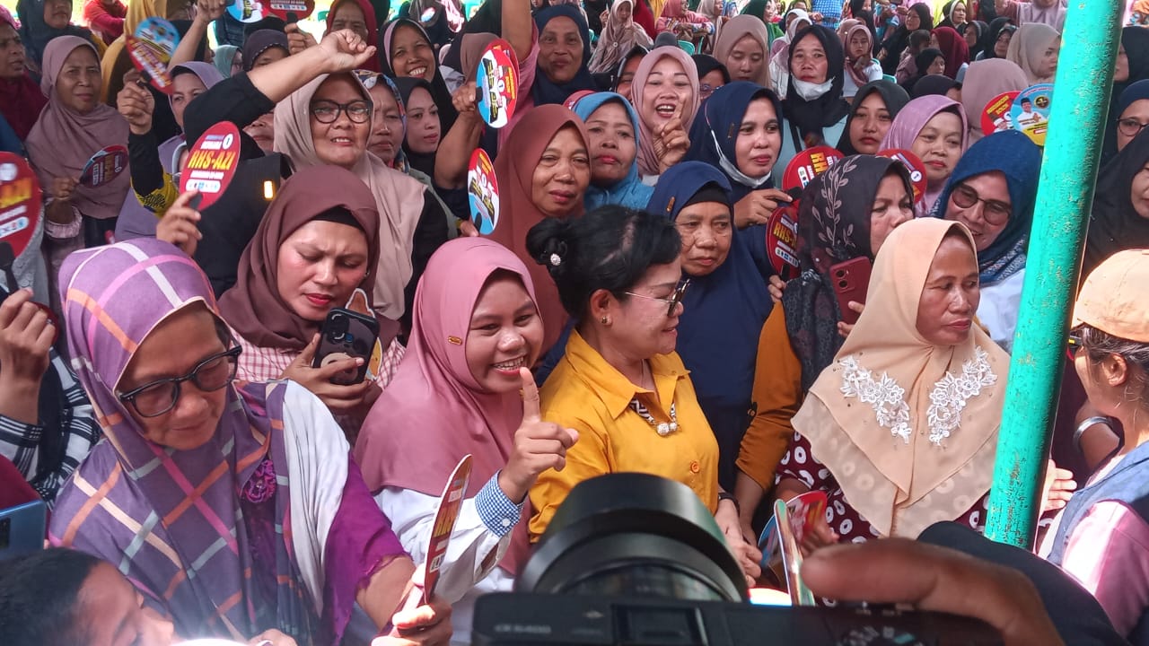Simalungun – Berjumlah ratusan kaum perempuan di kecamatan Bandar, tepatnya di Nagori Perdagangan II sehati untuk mendukung calon Bupati nomor urut 1 Radiapoh Hasiholan Sinaga (RHS) – Azi Pratama Pangaribuan (Azi) dalam pilkada periode 2024-2029.