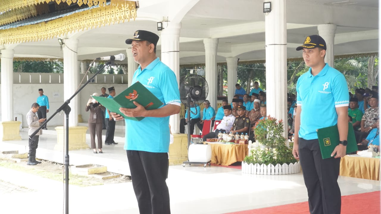 LANGKAT _ anews-chanel.com, Plt Bupati Langkat H.Syah Afandin SH menjadi pembina upacara Hari Amal Bhakti ke-78 tahun 2024, di Alun-alun T. Amir Hamzah Stabat , Rabu 3 Januari 2024.