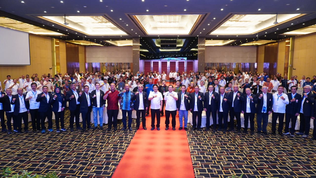 LANGKAT _ Plt. Bupati Langkat H. Syah Afandin, SH sekaligus ketua KONI Kabupaten Langkat menghadiri Rapat Kerja KONI SUMUT Tahun 2024 bertempat Hotel Grand Mercure, Medan (3/2/2024).