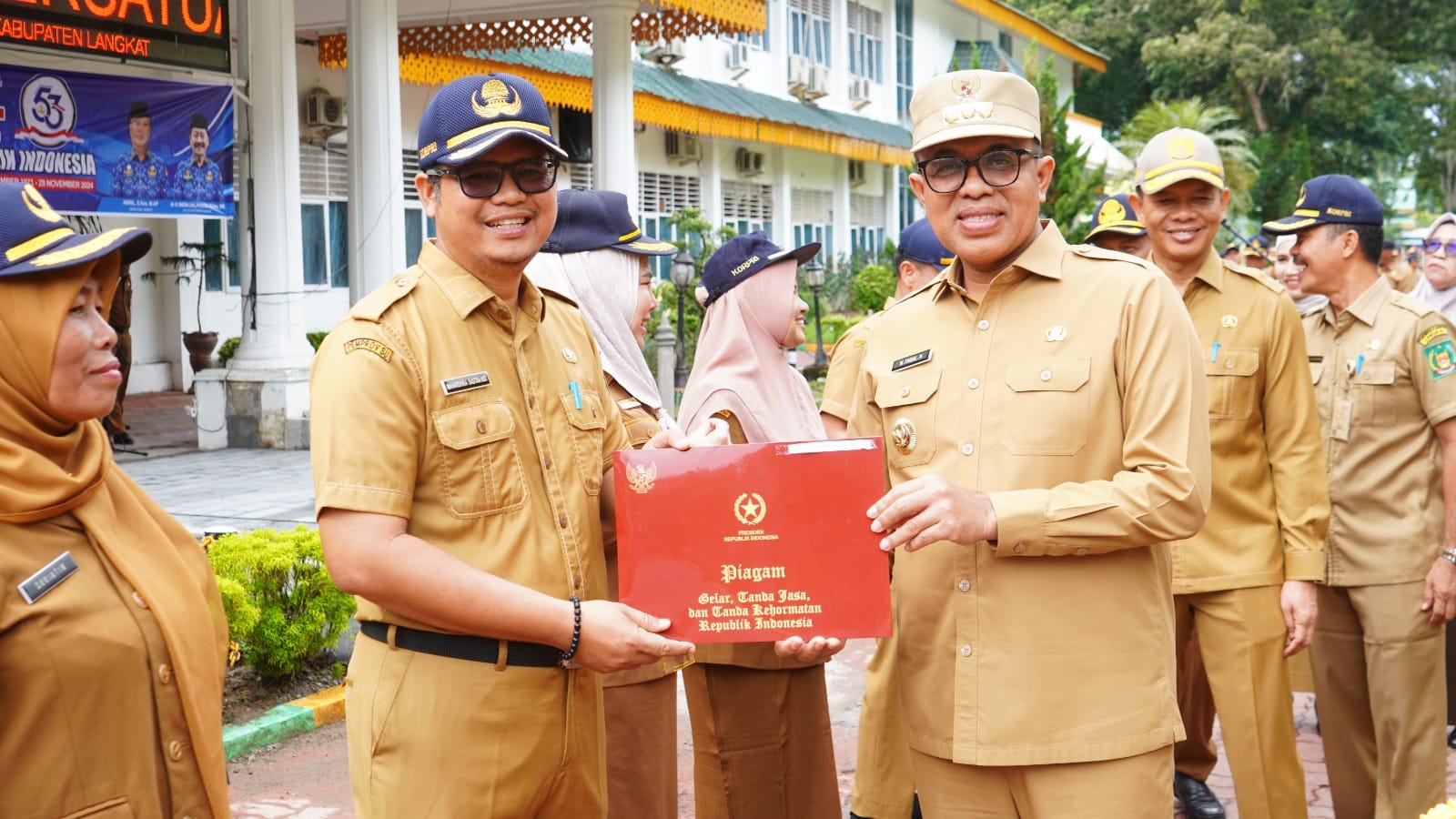 Apel gabungan ini juga menjadi momen penganugerahan tanda kehormatan Satyalancana Karya Satya kepada enam ASN Pemkab Langkat. Penghargaan ini diberikan berdasarkan Keputusan Presiden Republik Indonesia Nomor 67/TK/Tahun 2024, sebagai apresiasi atas dedikasi ASN yang telah mengabdi selama 10, 20, hingga 30 tahun.