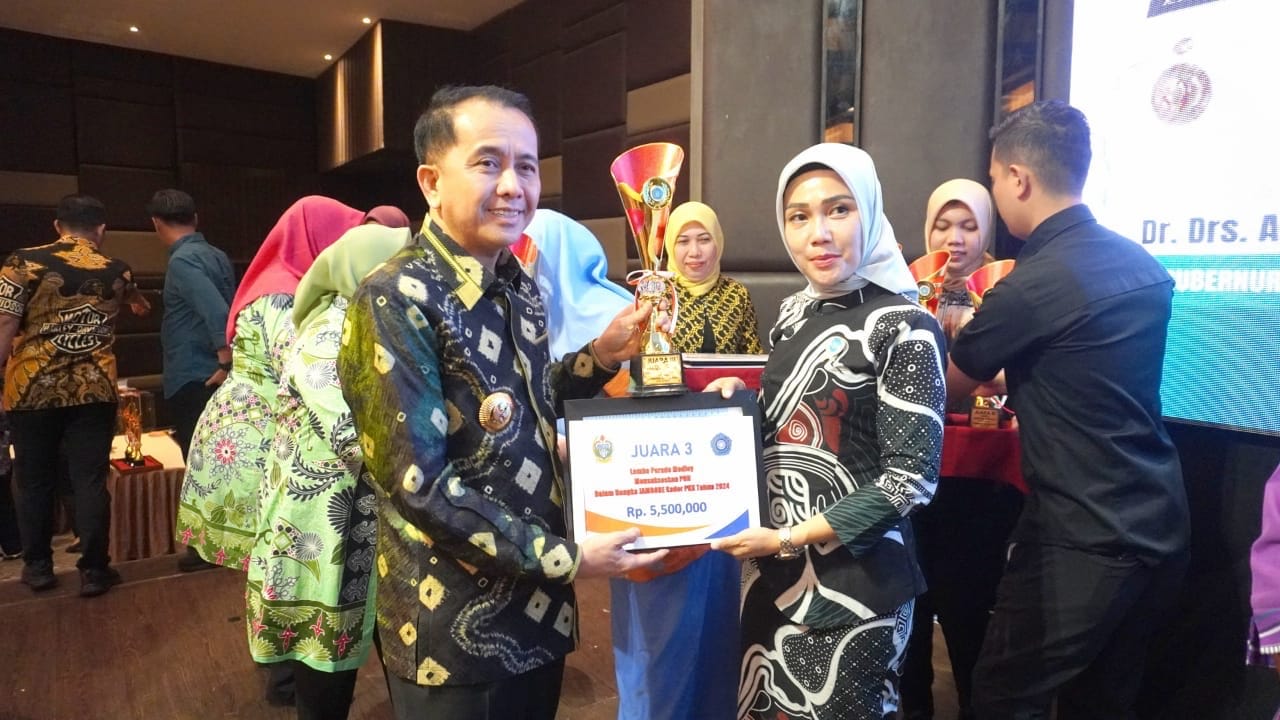 ANEWS-Chamel _ TP PKK Kabupaten Langkat kembali menunjukkan prestasinya di ajang Jambore Kader PKK Tingkat Provinsi Sumatera Utara 2024. Di bawah kepemimpinan Pj. Ketua TP PKK, Ny. Uke Retno Faisal Hasrimy, tim PKK Langkat berhasil meraih juara 3 dalam perlombaan Cerdas Cermat Kader PKK serta juara 3 dalam kategori Medley, pada acara yang berlangsung pada Selasa (20/08/2024) malam.
