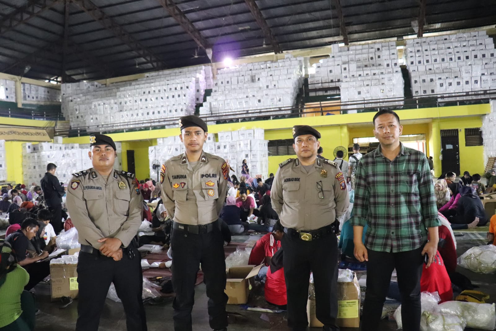 Personel Polres Langkat melakukan pengamanan pelipatan surat suara yang dilakukan petugas KPU Kabupaten langkat dengan melibatkan petugas dari Bawaslu Kabupaten Langkat dan Petugas Panwaslu Kecamatan