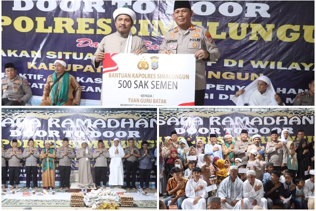 SIMALUNGUN – Semangat berbagi di bulan suci Ramadan diwujudkan dengan penuh kehangatan melalui program Sapa Ramadan Door to Door yang dilaksanakan jajaran Polres Simalungun, Senin (23/2/2026) sore. Dalam kegiatan penuh nilai spiritual dan kepedulian sosial tersebut, Kapolres Simalungun, AKBP Marganda Aritonang, S.I.K., S.H., M.M., secara langsung menyalurkan bantuan untuk pembangunan pendidikan tahfidz di Pondok Pesulukan Serambi Babussalam, Nagori Jawa Tongah, Kecamatan Hatonduhan.
