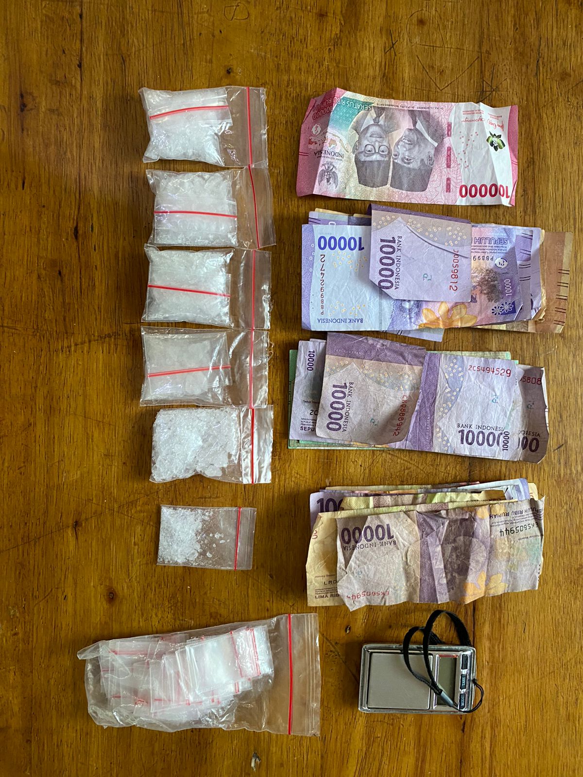 Pada saat diamankan “MN(44)” alis Tubin kedapatan membuang sesuatu ke tanah dan langsung dilakukan penyisiran oleh personel bersama gamot setempat di lokasi tersebut, dari hasil penggerebekan petugas berhasil menemukan 6 paket klip transparan yang diduga berisi narkotika jenis sabu-sabu dengan total berat 53.61 gram, sebuah timbangan digital, bal plastik klip kosong, dan uang tunai Rp 380.000 dari hasil penjualan narkotika, “ungkap AKP Irvan.