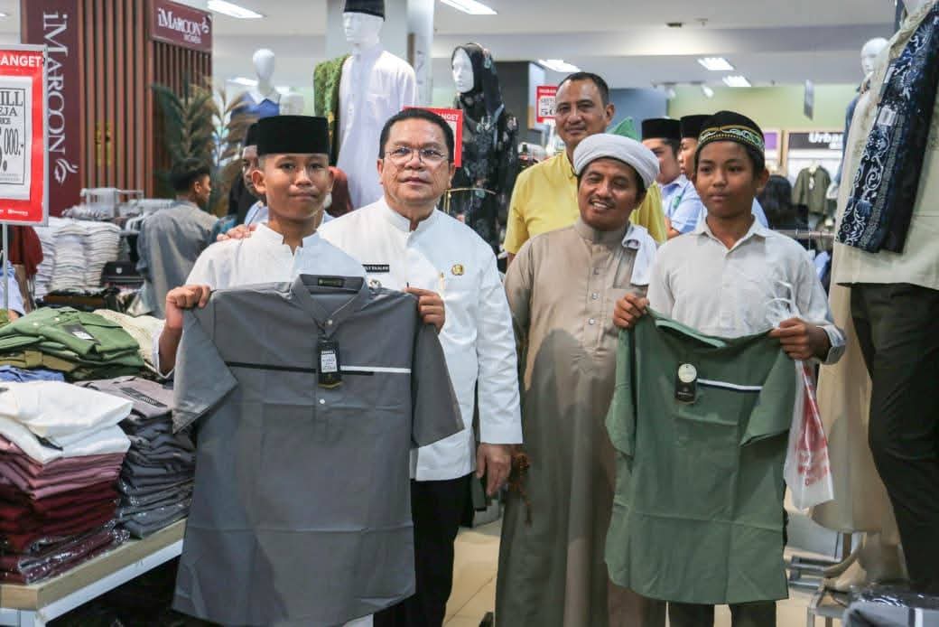 Di dalam toko, suasana penuh kehangatan langsung terasa. Anak-anak diberikan kebebasan memilih pakaian dan perlengkapan Lebaran sesuai dengan anggaran yang telah disiapkan. Dengan penuh perhatian, Wali Kota dan Ketua TP PKK ikut mendampingi mereka menyusuri rak demi rak pakaian.