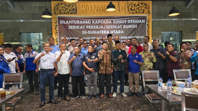 “Silaturahmi ini menjadi langkah strategis untuk memastikan situasi Kamtibmas tetap aman dan kondusif setelah penetapan UMP Sumut sebesar 7,9 persen. Momentum ini harus kita jaga bersama agar Sumatera Utara tetap stabil dan produktif,” tegas Kombes Nanang saat membacakan amanat Kapolda.