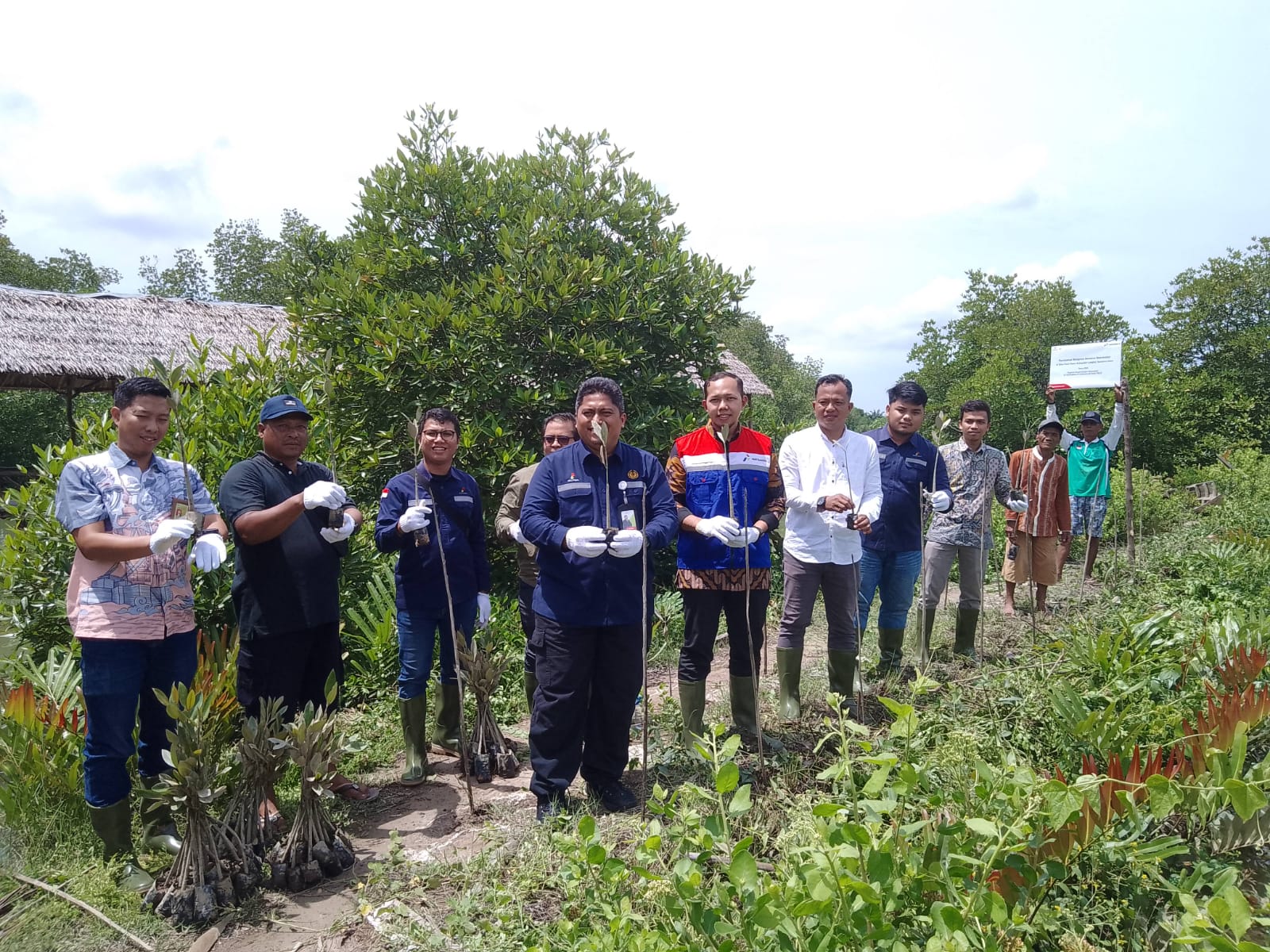 LANGKAT _ Pertamina EP Pangkalan Susu bersama SKK Migas Sumatra Bagian Utara ( Sumbagut ) berkolaborasi dengan Kelompok Tani Hutan ( KTH ) Maju Bersama Desa Pasar tanam 2000 pohon bibit mangrove, di Dusun X Paluh Baru, Desa Pasar Rawa, Kecamatan Gebang, Kabupaten Langkat, Sumut, Rabu ( 16/10/2024 ). Diketahui KTH Maju Bersama Desa Pasar Rawa merupakan mitra binaan dalam penanaman pohon mangrove Pertamina EP Pangkalan Susu.