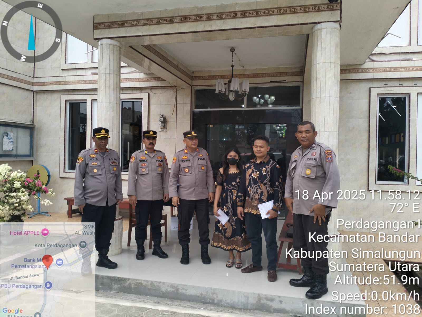 “Pada pukul 11.30 WIB tadi, Waka Polres bersama rombongan dan Kapolsek Perdagangan, AKP Ibrahim Sopi, SH, MH, telah melakukan pengecekan di sejumlah gereja prioritas untuk memastikan keamanan ibadah Paskah berjalan dengan baik,” jelas AKP Verry Purba.